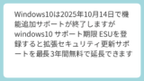 Windows10は2025年10月14日で機能追加サポートが終了しますがwindows10 サポート期限 ESUを登録すると拡張セキュリティ更新サポートを最長3年間無料で延長できます